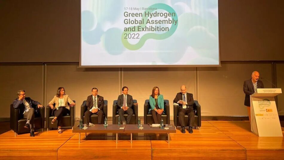 El auditorio con expertos de renombre mundial se interiorizó sobre las energías limpias de la provincia, a partir de la producción y uso de hidrógeno verde, en el marco de la Asamblea y Exposición Global de Hidrógeno Verde 2022, en Barcelona, España.
