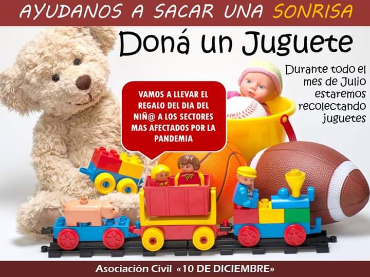 Durante el mes de Julio estaremos recolectando JUGUETES NUEVOS para ser entregados en los sectores mas afectado por la pandemia.