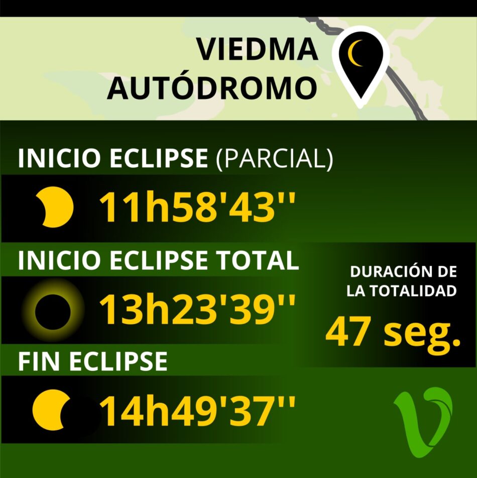 El gobierno de Viedma habilitará, junto a la comisión del Autódromo de la ciudad, un espacio en el playón de de ese sitio para que vecinas y vecinos puedan visualizar el aclipse.
