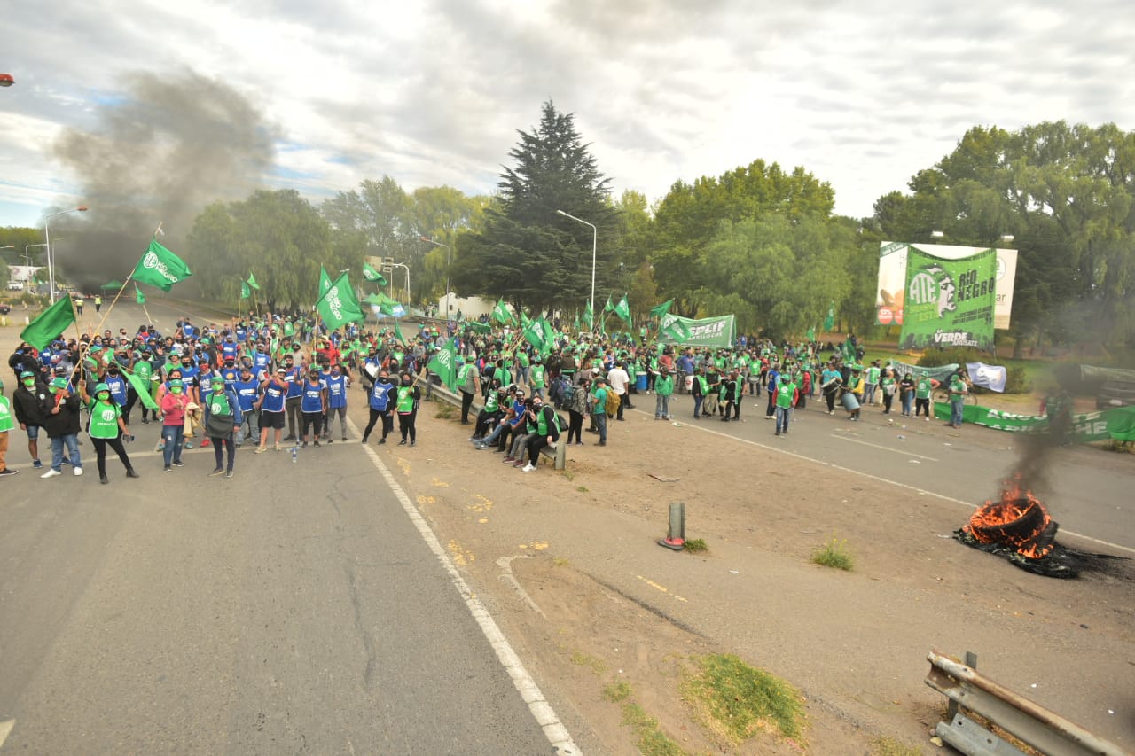 Hubo una masiva concentración en los puentes Cipolletti- Neuquén y un acatamiento del paro de más del 95 por ciento que se hizo sentir en toda la provincia.