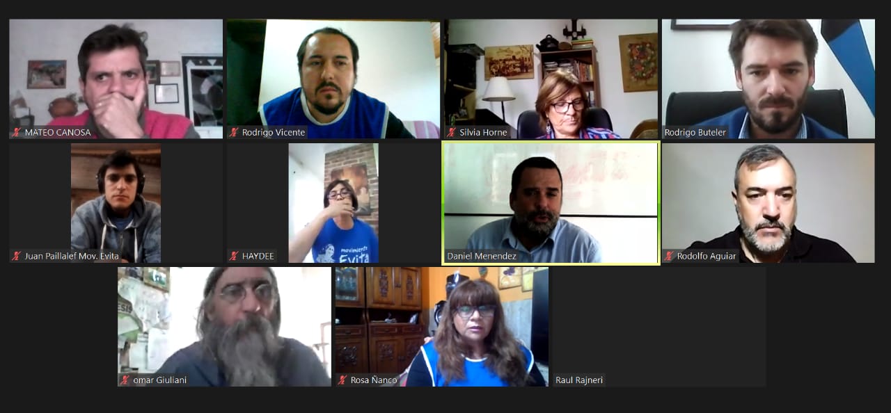 La Central de Trabajadores de la Argentina (CTA) Autónoma y sus organizaciones sociales FeNaT, MAP y Odel participaron hoy de una reunión virtual con Rodrigo Buteler, ministro de Gobierno, y Daniel Menéndez, subsecretario de Promoción de la Economía Social del Ministerio de Desarrollo Social de la Nación, para anunciar el lanzamiento del programa “El barrio cuida a tu barrio”, en Río Negro. Participaron también referentes de Somos Barrios de Pie, CCC y Movimiento Evita (CTEP).