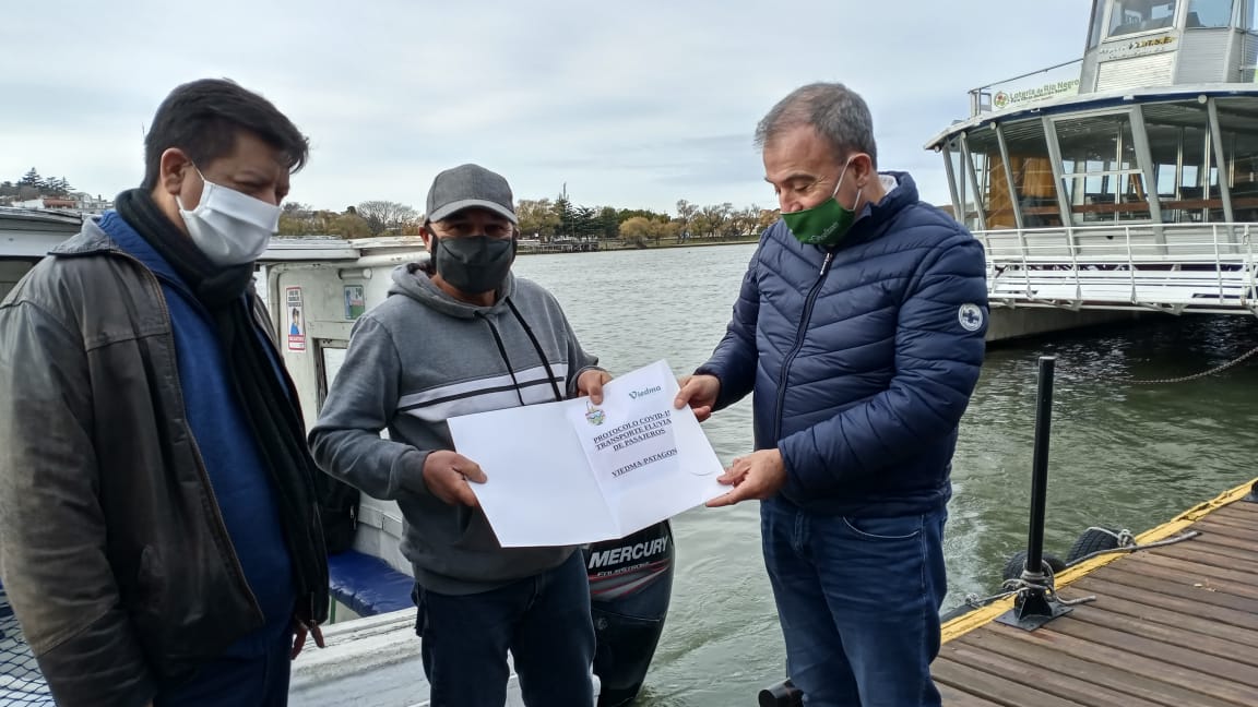 El intendente de Viedma, Pedro Pesatti, entregó ayer a referentes de los lancheros de la comarca el protocolo sanitario que les permitirá trabajar desde el próximo lunes.