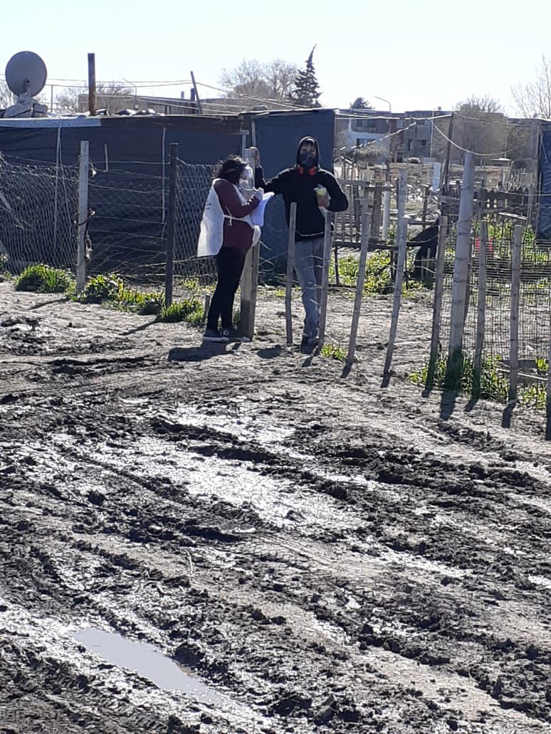 En esta oportunidad, el gobierno de Viedma junto a promotores del ministerio de Desarrollo Social de la Nación, entregaron kits de lavandina, jabón y alcohol en gel a las familias del barrio Unión.