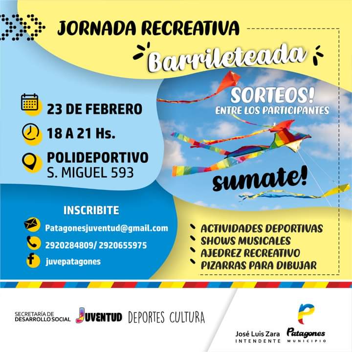 El Área de la Juventud en conjunto con la Secretaría de Desarrollo Social y las Direcciones de Deporte y Cultura, invitan a la comunidad a participar del evento “Los barriletes vuelan».
