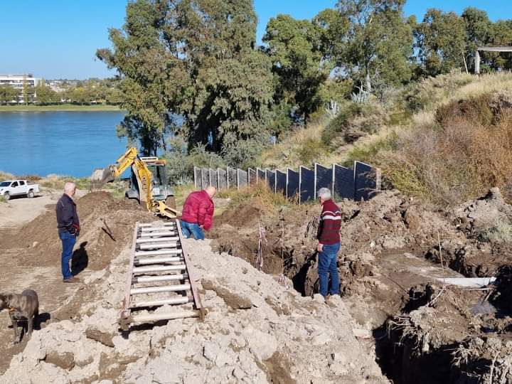 El Intendente José Luis Zara, junto al Secretario y el Subsecretario de Obras Públicas, Jorge Isaac y Roberto Haure, respectivamente, visitaron la obra de red cloacal que se ejecuta, en su segunda etapa, en los barrios Villa del Carmen y Ceferino, de Carmen de Patagones.