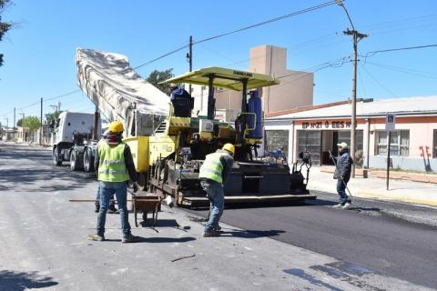 Las tareas de asfalto cuentan con un 50 por ciento de avance y se ubican actualmente en el sector de la Escuela Primaria N° 21.