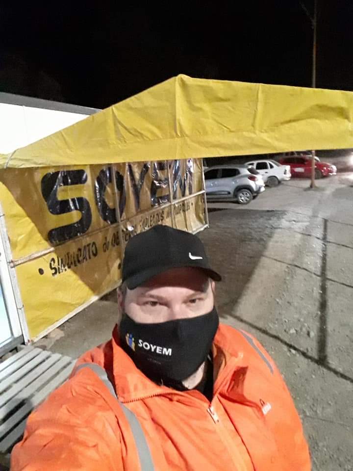 El Secretario general de Soyem Viedma, publicó como se vivió el momento del anuncio del caso positivo de coronavirus en Viedma ya que, en ese instante se encontraba de recorrida acompañando a las y los trabajadores que se encuentran desempeñando tareas en el acceso oeste, lugar donde ellos de manera solidaria colocaron la carpa para refuerzo de los mismos.