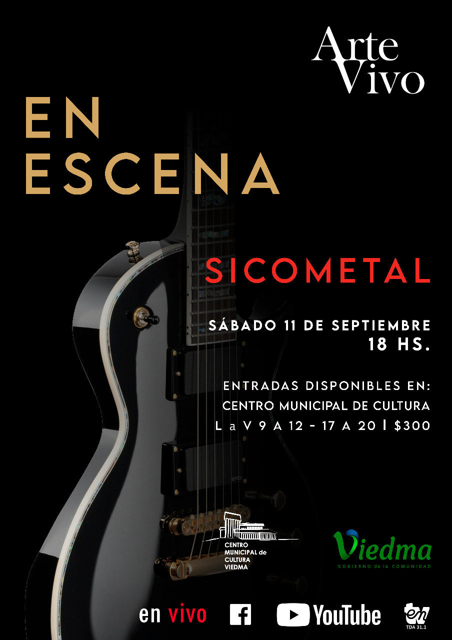 En el marco del Ciclo En Escena que se viene desarrollando la Subsecretaría de Cultura de la Municipalidad de Viedma con el fin de visibilizar y acompañar las propuestas artísticas de exponentes musicales de nuestra ciudad se presentara el grupo Sicometal el sábado 11 de septiembre desde las 18 hs en el Centro Municipal de Cultura.