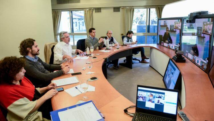 Participaron también del encuentro el jefe de Gabinete, Santiago Cafiero; el ministro de Economía, Martín Guzmán; el presidente de la cámara de Diputados, Sergio Massa y el ministro del Interior, Eduardo de Pedro.