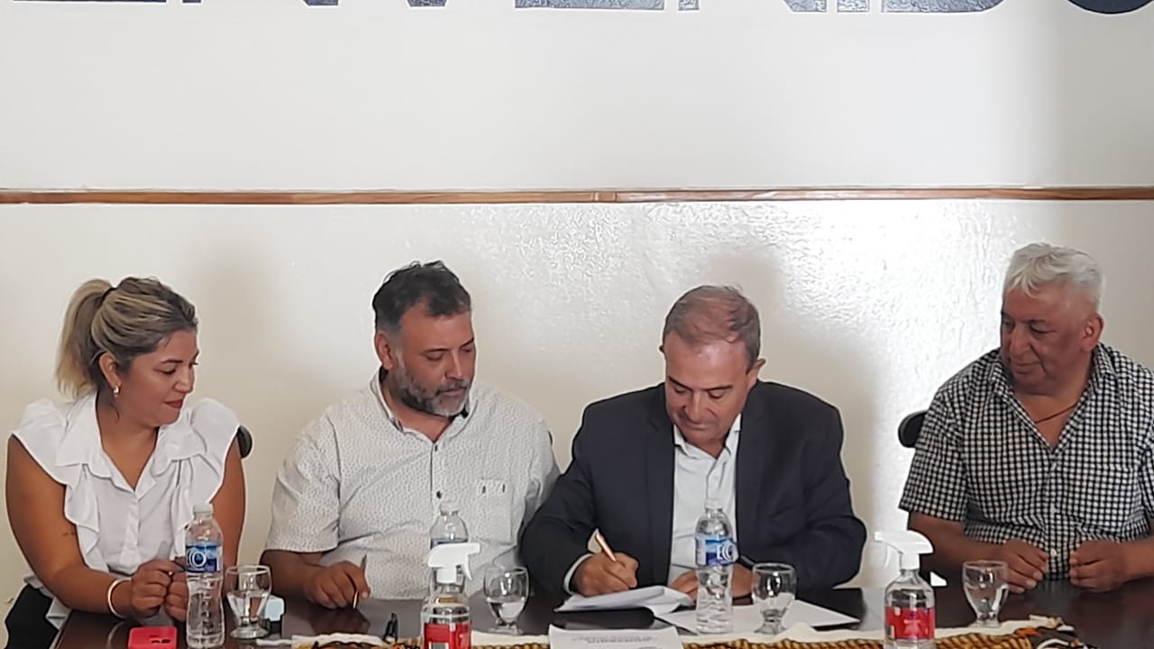 Este convenio se llevó adelante con la presencia del referente del gremio mercantil, Bruno Cabrera y referentes de la firma Cementos Del Valle.