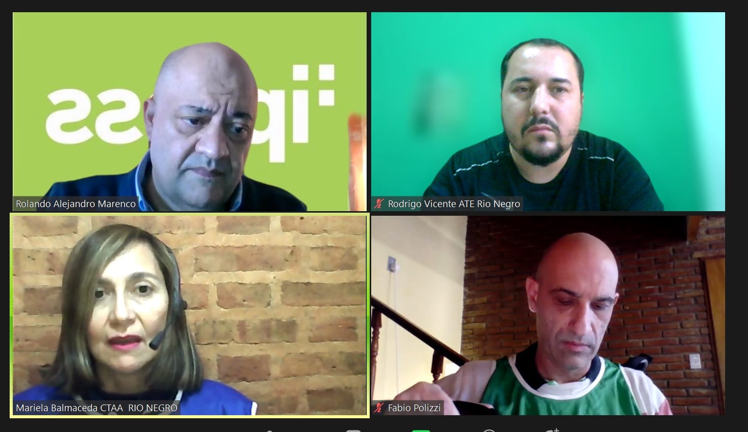 La Central de Trabajadores de la Argentina (CTA) Autónoma desde la Secretaria Gremial encabezada por Rodrigo Vicente, se reunió de manera virtual con el presidente del IPROSS Alejandro Marenco, el Vocal titular de ATE Fabio Polizzi y Mariela Balmaceda presidenta de la Asociación de Acompañantes Terapéuticos «Unidos para Acompañarte» (AATUA) de Río Negro para tratar el aumento de los valores de reintegro de la obra social.
