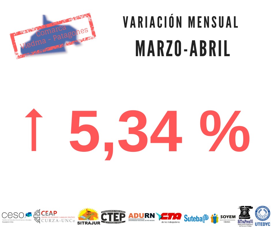 🛒 El Índice de Precios de la Canasta Alimentaria en Supermercados – Comarca Viedma-Carmen de Patagones se incrementó un 5,34% en el mes de ABRIL respecto a MARZO de 2022.
