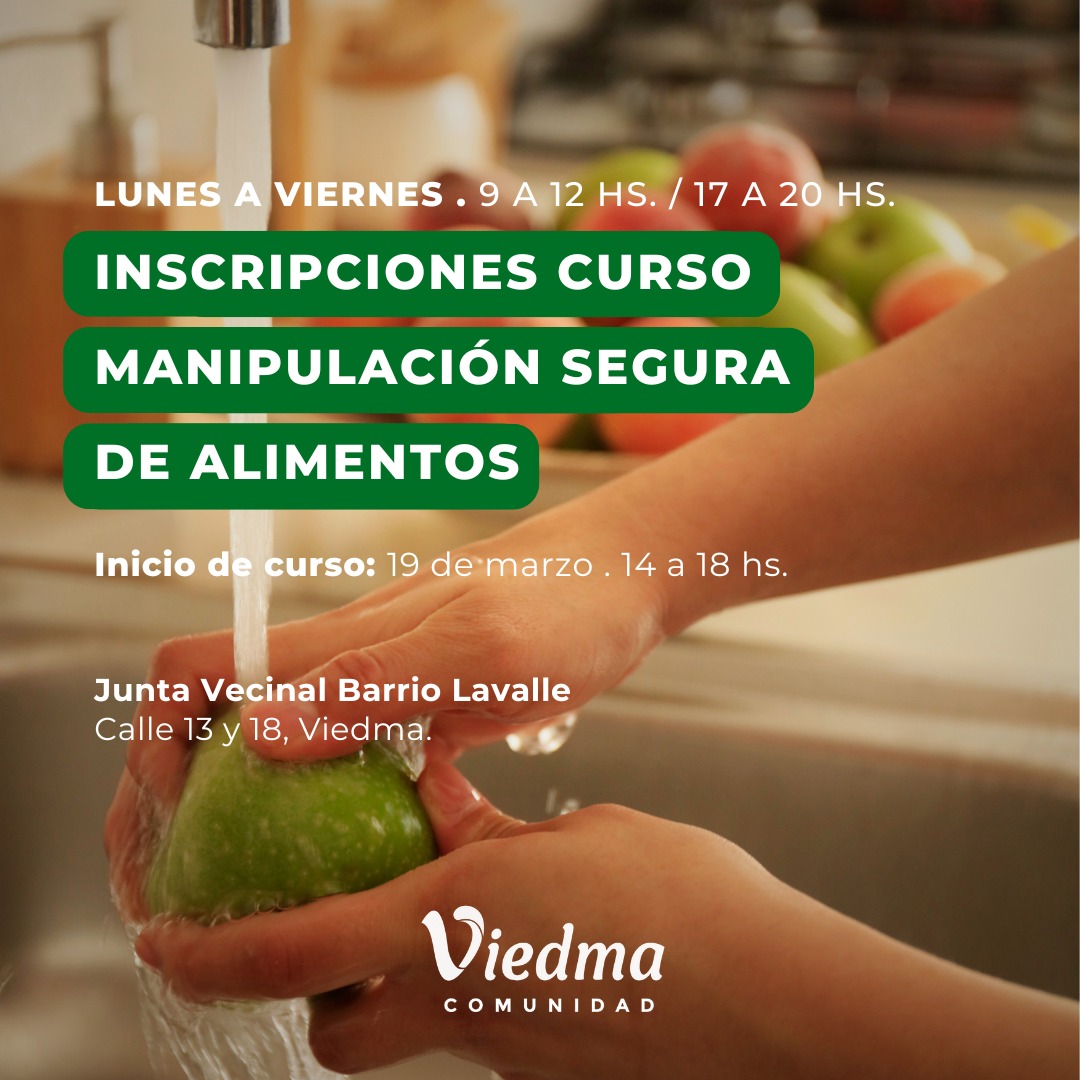 ✅️Hasta el lunes 18 estarán abiertas las inscripciones para un nuevo curso de Manipulación Segura de Alimentos.