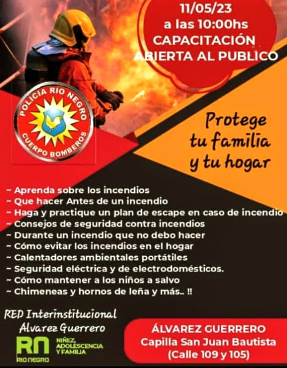 El cuerpo de bomberos de la provincia de Rio Negro brindará una capacitación de Prevención y Protección contra Incendios en los barrios de la ciudad de Viedma.