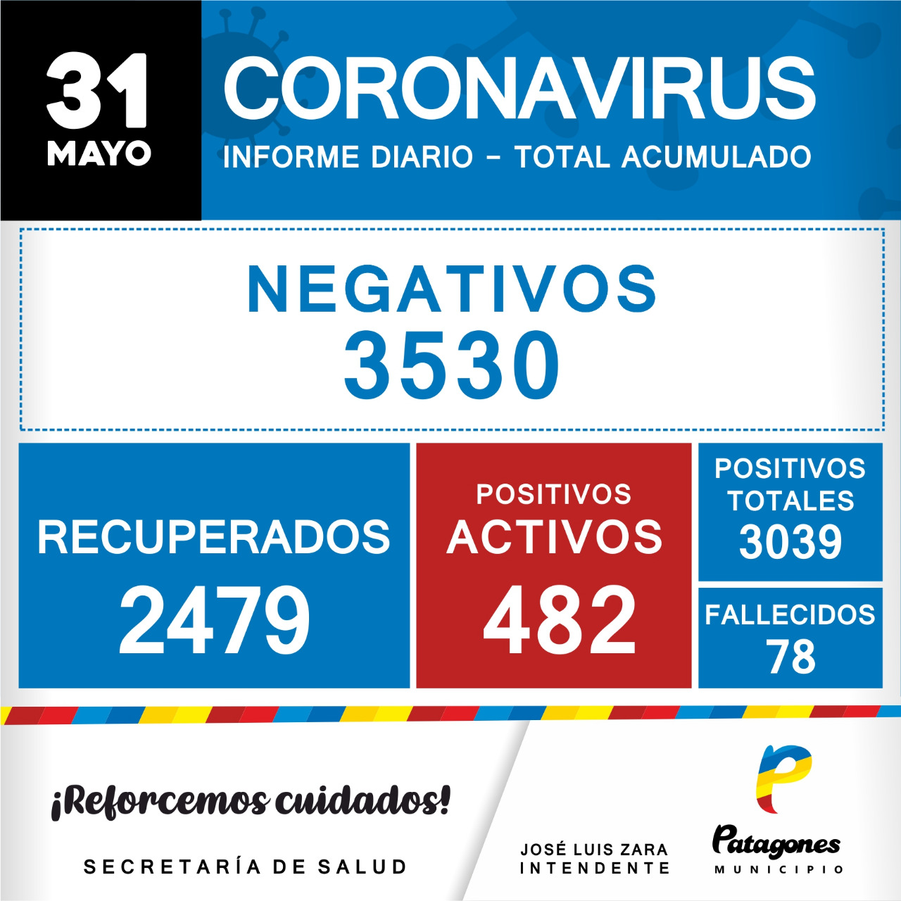 A la fecha, son 482 los positivos activos, 3530 los estudios con resultado negativo y 2479 los pacientes recuperados.