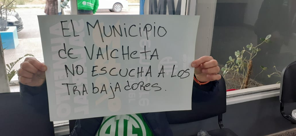 Luego de pasar la noche en el Municipio en protesta por el injustificado traslado de trabajadores de un sector a otro en una especie de castigo por no trabajar en día feriado, la Asociación Trabajadores del Estado (ATE) decidió profundizar las medidas de fuerza en el Municipio de Valcheta.