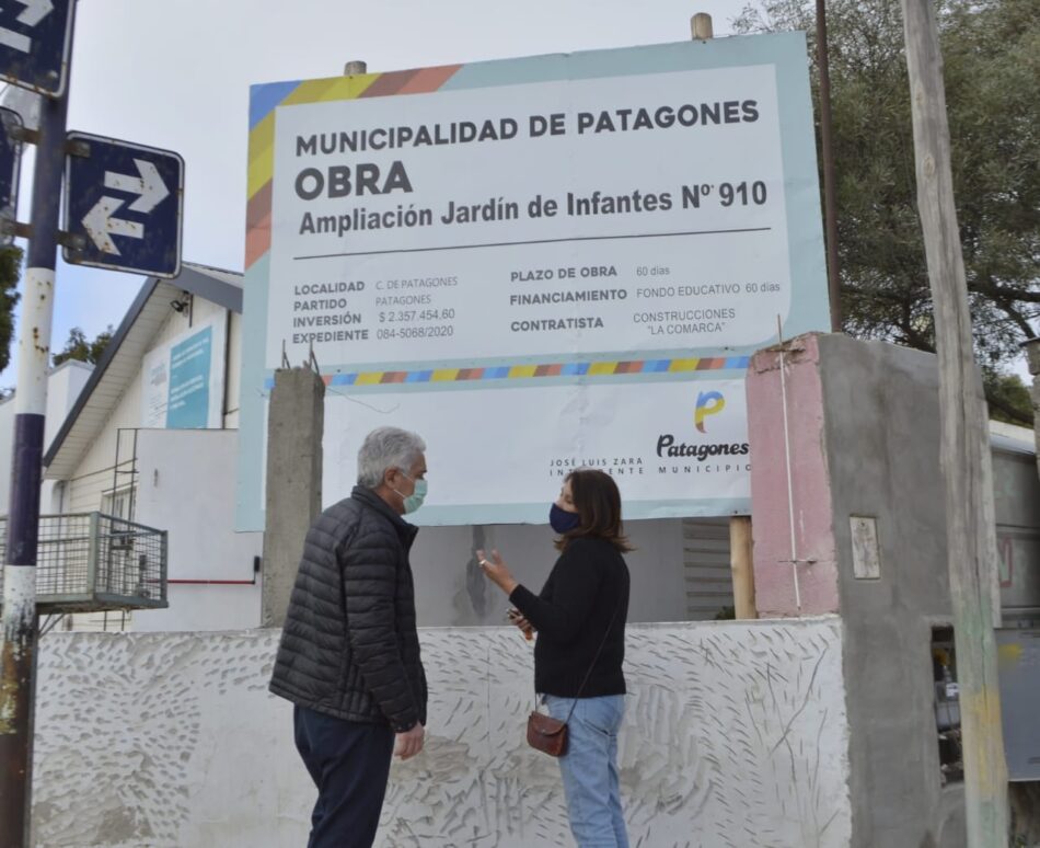 El Intendente de Patagones, Ing. José Luis Zara, recorrió la obra de ampliación del Jardín de Infantes Nº 910, ubicado en el barrio Villa Mazzini.
